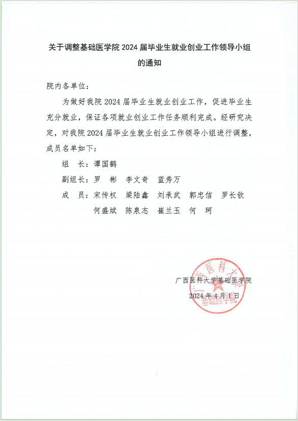 关于调整香港六合彩特码预测资料 2024届毕业生就业创业工作领导小组的通知