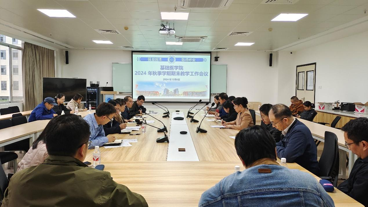 12月6日,香港六合彩特码预测资料 在校本部药基楼5楼会议室召开2024年秋季学期期末教学工作会议,香港六合彩特码预测资料 院长罗彬、党委副书记王闻楚、副院长蓝秀万、各教研室主任、副主任、党支部书记及教研科、院办相关人员参加本次会议。会议由罗彬主持。