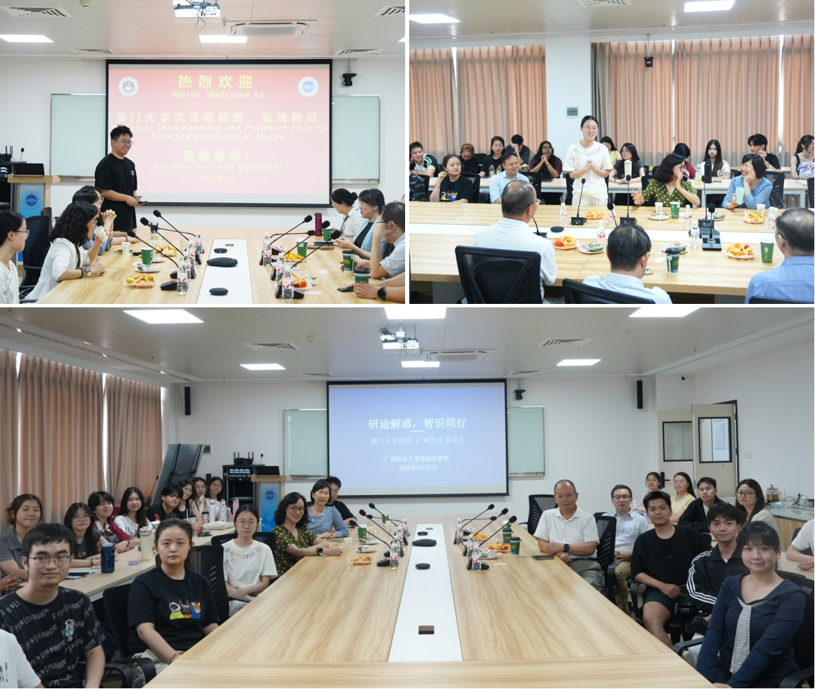3月27日上午,名家讲坛第189、190期如期举行。沈汉明教授以《Glucose metabolism in regulation of mitophagy via PINK1 and beyond》为题,分享了葡萄糖代谢与PINK1调控线粒体自噬的相关研究成果;赵琦教授围绕《工程化免疫分子和细胞治疗癌症的研究》,详细介绍了科研团队在癌症治疗领域的研究与进展。当日下午,两位教授与香港六合彩特码预测资料 研究生座谈交流,围绕科研方法与思维展开深入探讨,耐心解答学生提出的各类科研疑问,为研究生科研之路提供了指导。3月29日上午,强基讲坛第14、15期开讲,武鸣校区近400名本科生参会,两位教授分别以《Keep hungry keep healthy》《现代免疫学的发展与免疫的应用》为题,结合自身经历与学科前沿,为本科生普及学术知识、传递科研理念。